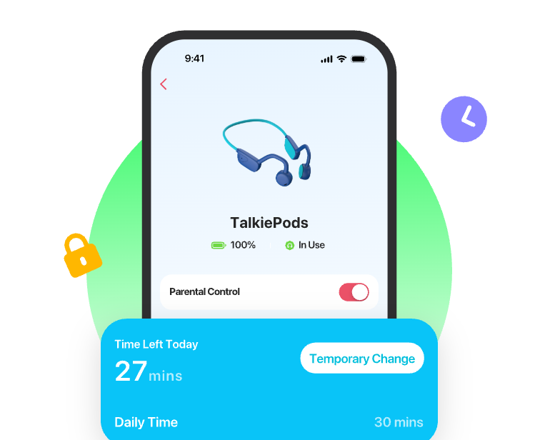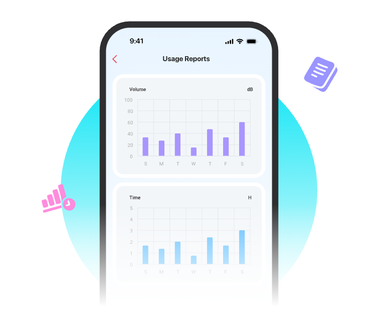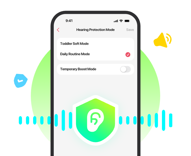 Set limits on time and volume (85dB default, up to 94dB in travel mode)